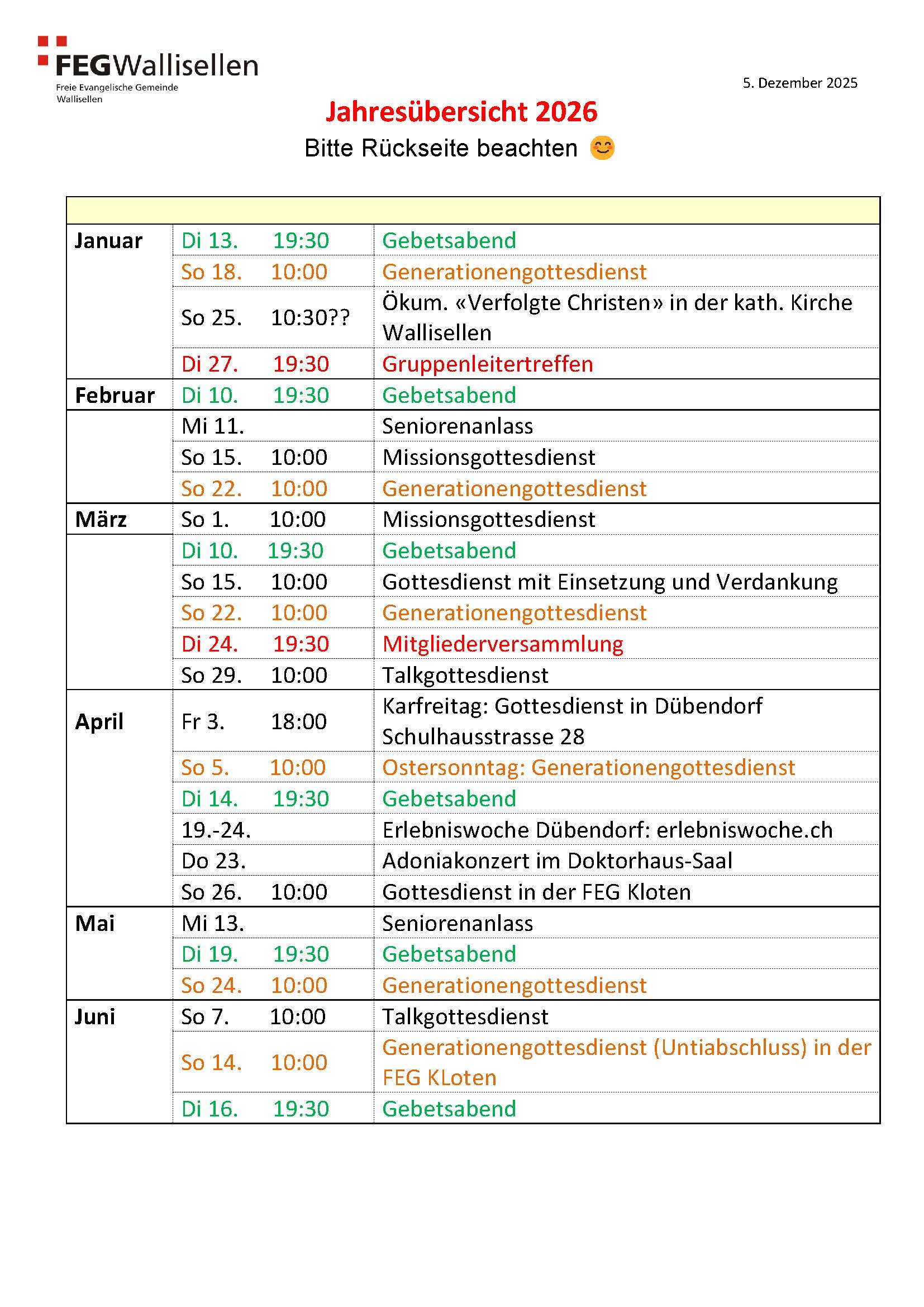 Jahresübersicht 2026