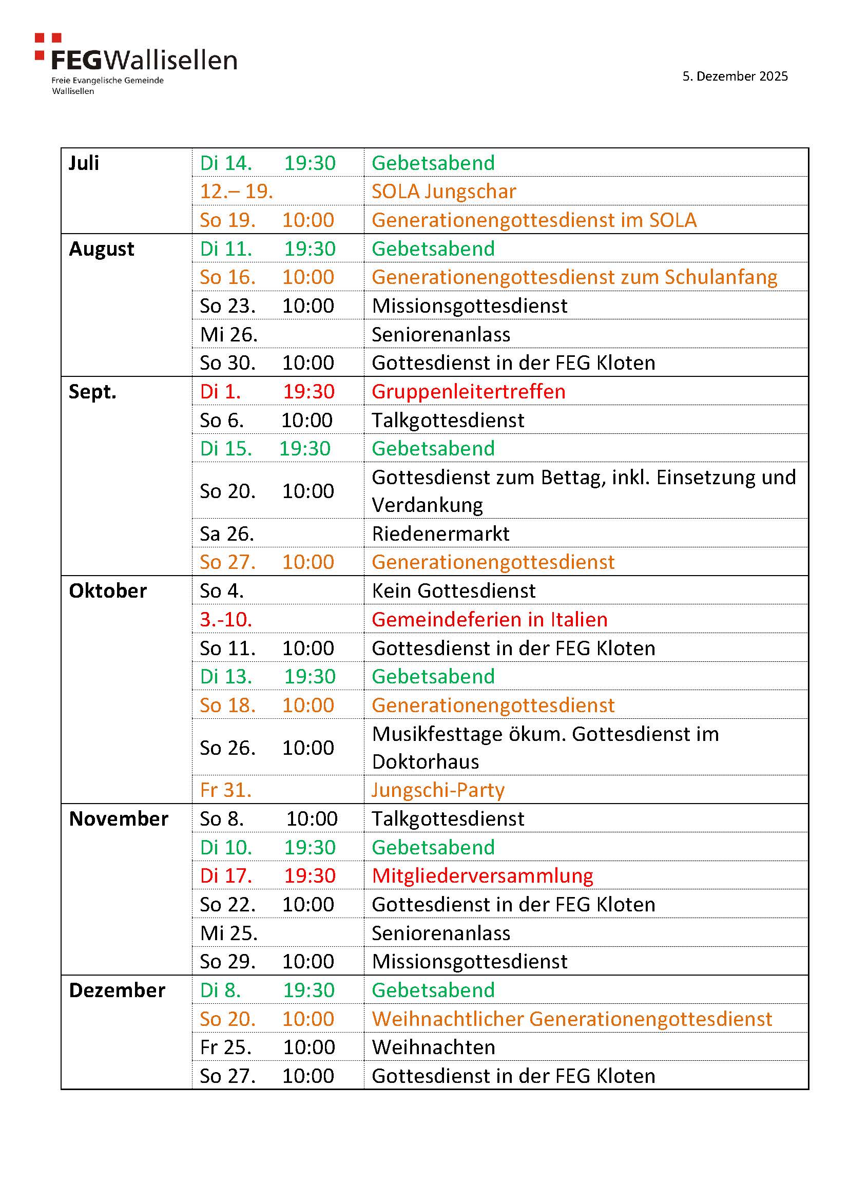 Jahresprogramm